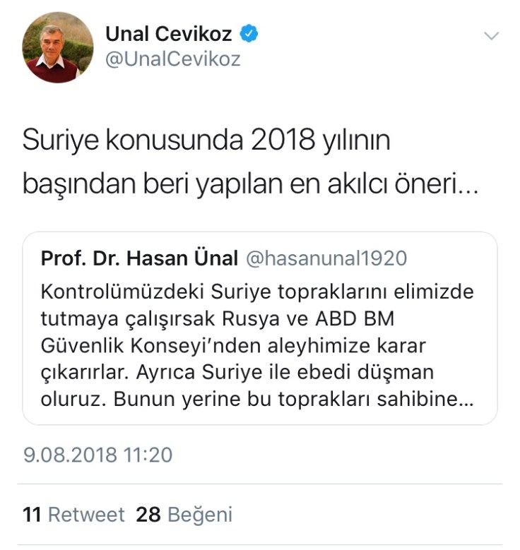 Suriye konusunda en akılcı öneri… Bunu paylaş: X'te paylaşmak için tıklayın (Yeni pencerede açılır) X Facebook'ta paylaşmak için tıklayın (Yeni pencerede açılır) Facebook Beğen Yükleniyor... İlgili Yorum bırakın Cevabı iptal et Δ