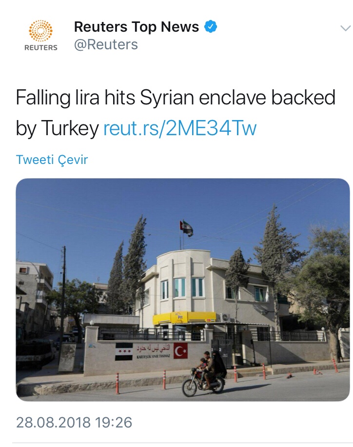 Uluslararası haber ajanslarında yer alan bir habere göre Suriye’nin kuzeyinde Türkiye’nin kontrol ettiği Afrin-Cerablus bölgesinde üslenen Özgür Suriye Ordusu (ÖSO) unsurlarının Türk lirasının, Suriye poundu karşısındaki değer kaybı nedeniyle maaşlarını TL olarak almak istemedikleri bilgisi yer almıştır.