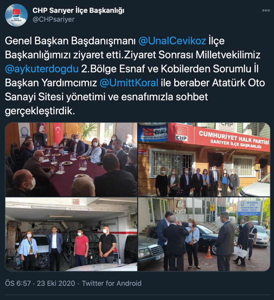 Ardından Bölge milletvekilimiz @aykuterdogdu , Sarıyer ilçe başkanımız, il başkan yardımcımız @UmittKoral ve Sarıyer ilçe ve Belediye yetkililerimizden oluşan heyetle Atatürk Oto Sanayi Sitesini ziyaret ettik.