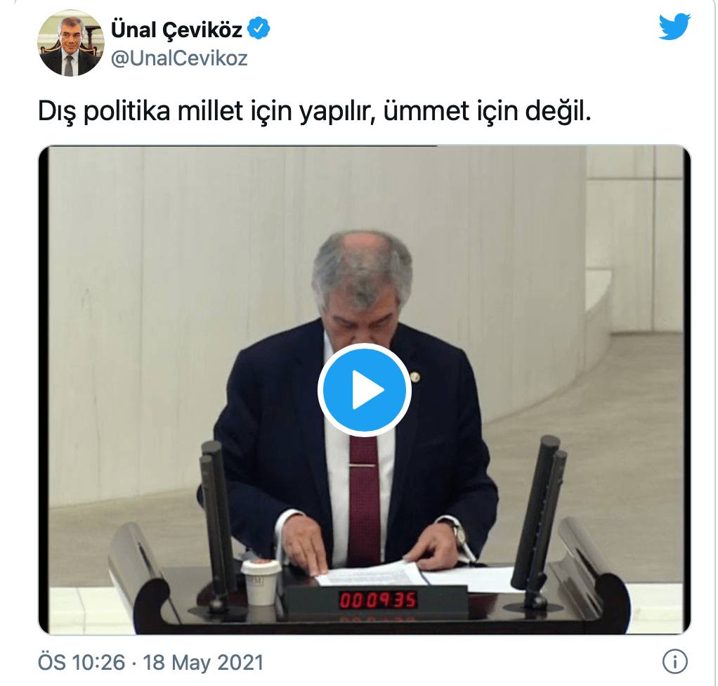 “Dış politika millet için yapılır, ümmet için değil” Dış politika millet için yapılır, ümmet için değil. Dış politika millet için yapılır, ümmet için değil. pic.twitter.com/gjeUBcguxt— Ünal Çeviköz (@UnalCevikoz) May 18, 2021 Bunu paylaş: X'te paylaş (Yeni pencerede açılır) X Facebook üzerinde paylaş (Yeni pencerede açılır) Facebook Beğen Yükleniyor... İlgili Yorum bırakın Cevabı iptal et Δ